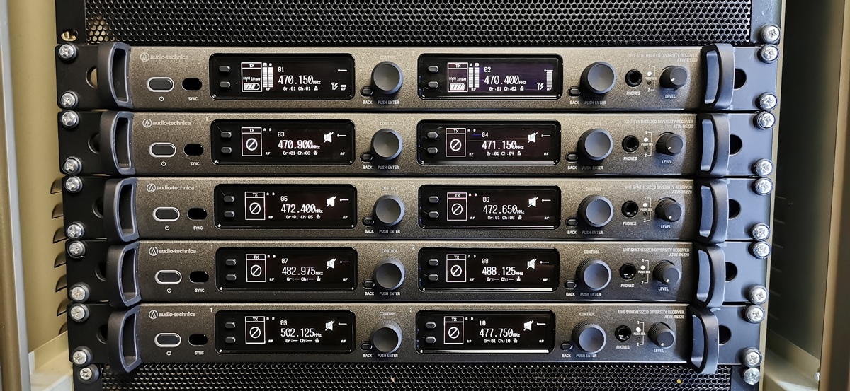 Nagy örömömre és meglepetésemre végül az 5000-es széria 10 csatornája került beépítésre. Igazán impozáns látvány a mostanra teljesen beépített nagy álló rack, benne a régi és új vevőkkel. Szerencsére könnyű volt a meglévő rendszer mellé beilleszteni, mert a vevő 230 MHz-es sávszélességet biztosít. Az adók két sávban fedik le ezt a tartományt: DE1 (470–590 MHz) és EG1 (580–700 MHz).